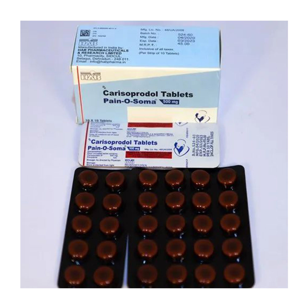 Carisoprodol ‘Pain-O-Soma’ 500 mg is a treatment most commonly used for the treatment of musculoskeletal pain. The drug’s effects begin within thirty minutes and can last for anywhere up to six hours. The best method to apply this medicine is by swallowing the tablets whole and washing them down with water. Do not bite or chew the tablet.